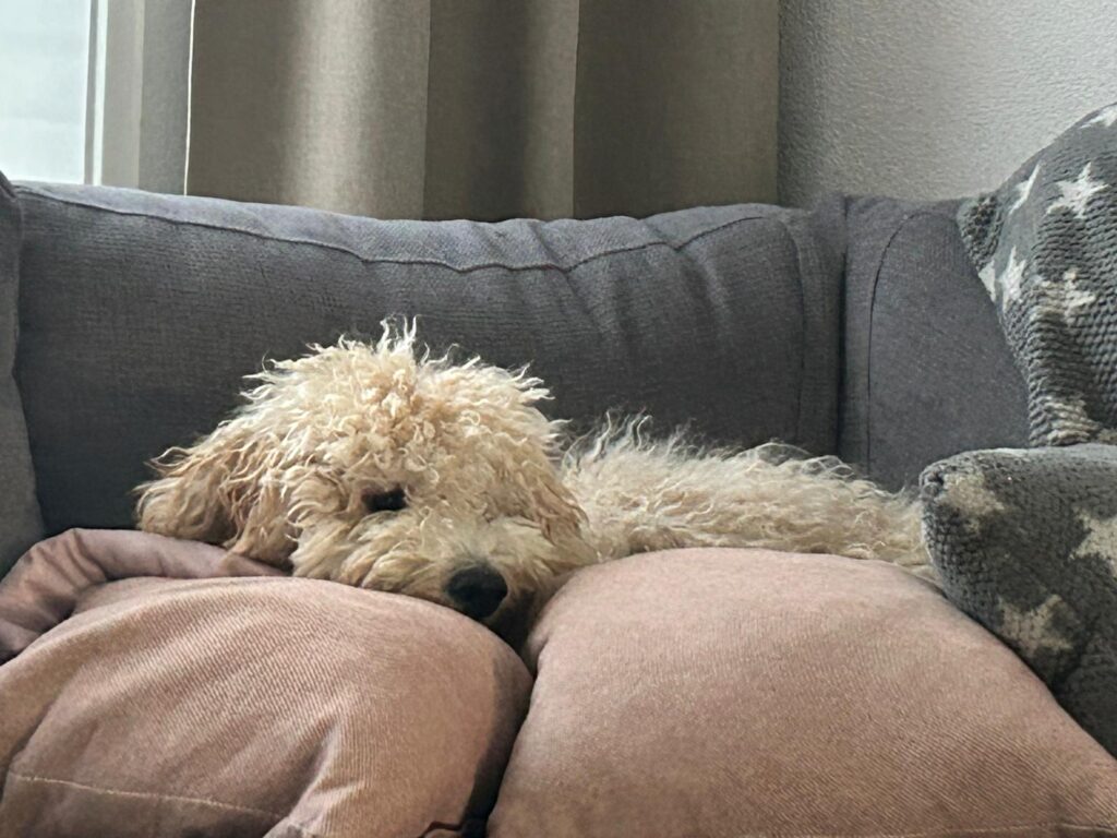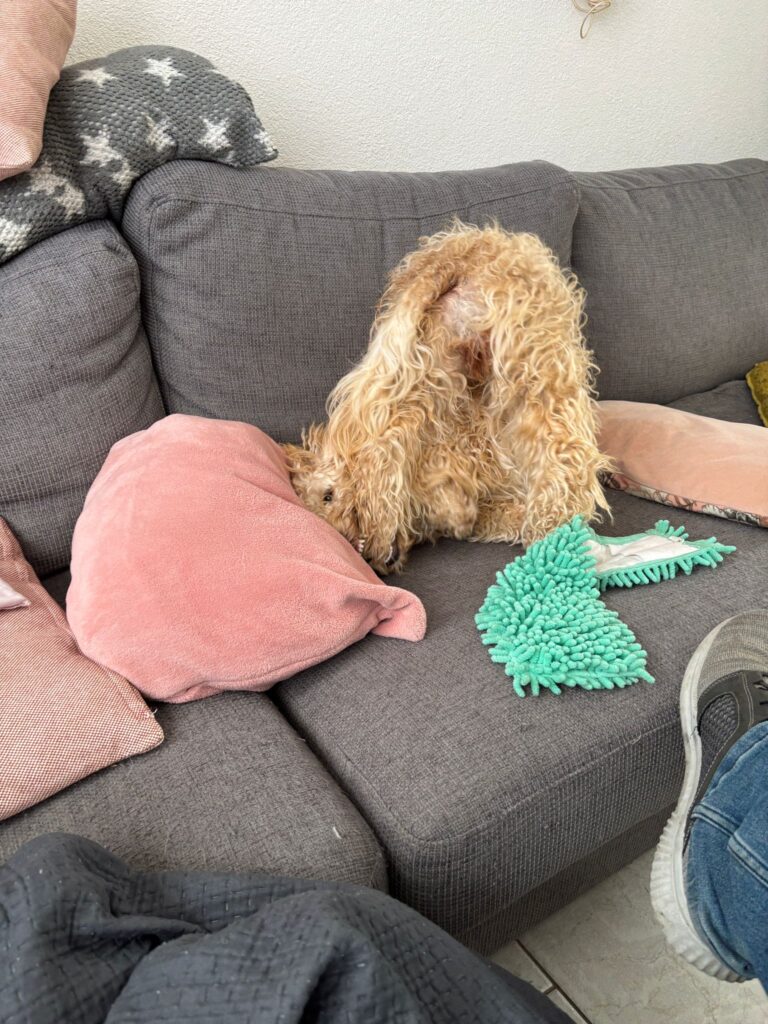 Hier lig ik samen met mijn mama. En alleen op de bank, en ja ik weet soms van gekkigheid niet hoe ik mij moet bewegen op de bank 🙂